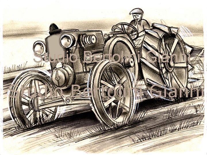 Lo Studio si occupa del disegno su commissione di qualsiasi tipo di veicolo d’epoca, in particolare dei settori macchine agricole ed operatrici, raffigurati in condizioni storiche originali.